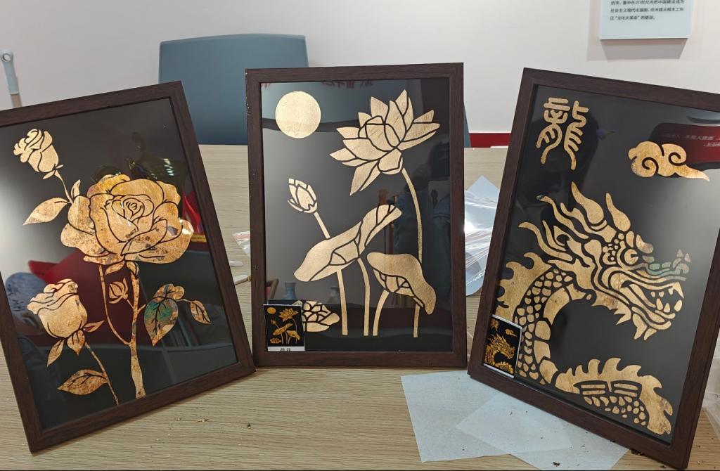 活动现场,同学们凝神专注,小心翼翼将薄如蝉翼的金箔铺展、按压、粘贴,指尖流转间尽显从容与细致。大家立足创意构思,搭配颜料勾勒轮廓、点缀细节,巧妙将建筑美学、花卉纹样、校园元素等融入创作,或用简约线条凸显金箔质感,或以色彩交织营造灵动意境,在传统工艺与现代审美碰撞中勾勒独特画面。 创作过程中,同学们围坐交流、互助共进,分享贴金防皱、服帖粘贴的实操技巧,面对构图配色难题相互探讨、共同破解,现场氛围融洽热烈。 一件件成品风格各异,简约大气的建筑风、清新雅致的花草风、个性鲜明的创意风精彩纷呈。金箔在光影下熠熠生辉,与色彩相得益彰,既展现了传统金箔工艺的精致韵味,也彰显了青年学子传承非遗文化的热情、独特的审美创意与扎实的动手能力,每一件作品都凝聚匠心、别具风采。
